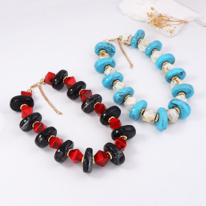 跨境欧美复古简约休闲夸张几何串珠拼色项链百搭通勤女项饰