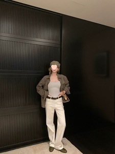 欧阳白色牛仔裤女秋季2025新款磨毛直筒长裤复古低腰显瘦裤子