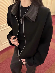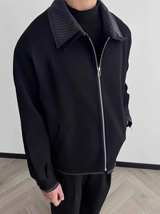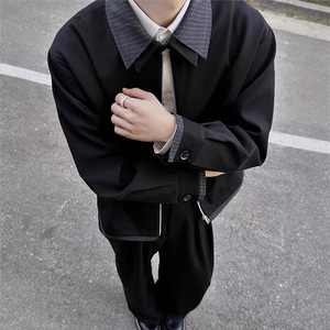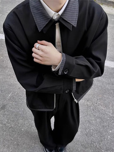 美式cleanfit复古格纹拼接翻领夹克男秋季宽松休闲夹克高级感外套