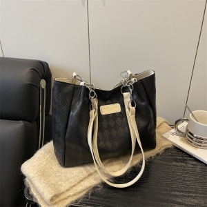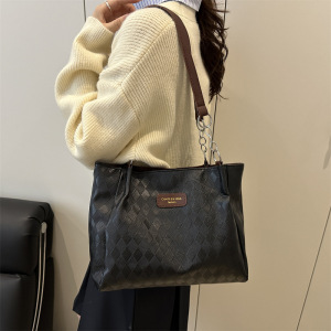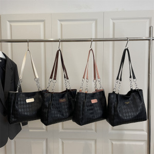 批发韩版撞色手提托特包女包2025秋新款格纹链条单肩包百搭腋下包