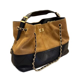 小香风磨砂流浪包拼接菱格绣线托特包链条腋下包单肩包女