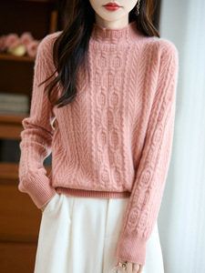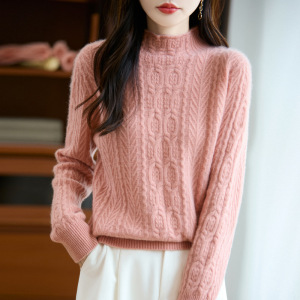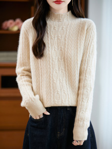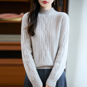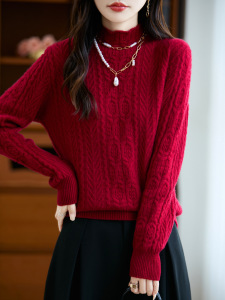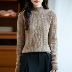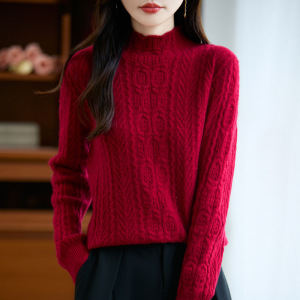 新款秋冬100羊毛女半高领套头毛衣针织衫洋气外穿打底一件代发