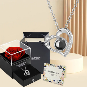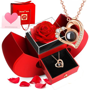 桃心投影石项链玫瑰金+一朵玫瑰礼盒双开门