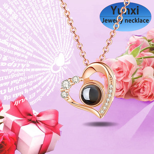 俄罗斯跨境100种语言投影石吊坠锁骨链时尚nis风ozon热卖桃心项链
