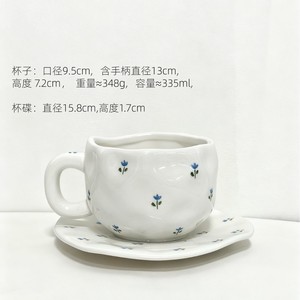 韩式ins风复古花朵陶瓷杯碟手捏不规则水杯咖啡下午茶批发
