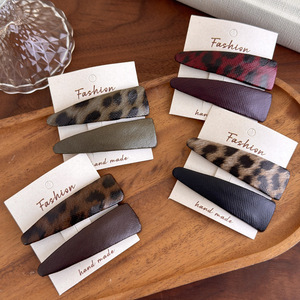 2个装~新款豹纹皮质三角BB夹复古ins风发夹高级侧边夹刘海碎发夹