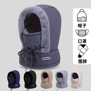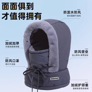 冬季保暖雷锋帽加绒加厚防寒面罩围脖一体防耳防风户外骑行包头帽