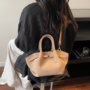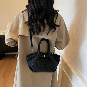 麂皮绒包包女大容量2025新款秋冬季复古小众斜挎包手提通勤水桶包
