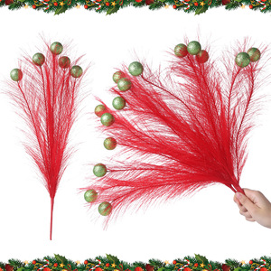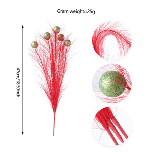 跨境圣诞树挑潘帕斯草绿色精灵圣诞树装饰 卷发茎红球新品格林奇