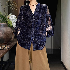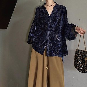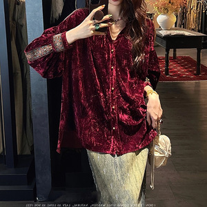【黛光山】抓皱烫金民族风丝绒衬衫2025秋季新款长袖甜美高级感
