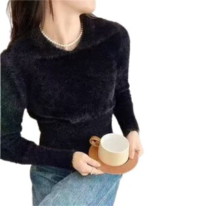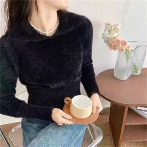 跨境软糯内搭打底毛衣女2025秋冬新款慵懒仿水貂毛短款针织衫上衣