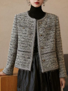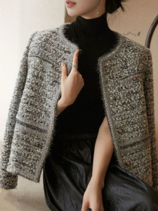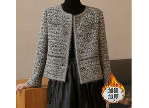感粗花呢重工编织小香风外套2025新款女秋冬加棉加厚短款上衣