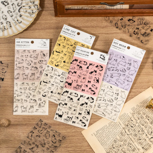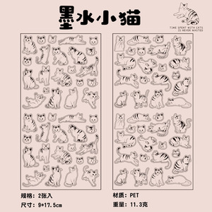 语闲pet贴纸 线喵贴贴 可爱猫咪图案防水素材手帐水杯卡片diy装饰