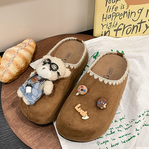 可爱小熊勃肯鞋半拖女外穿2025秋季新品厚底软底一脚蹬勃肯鞋女
