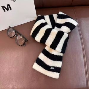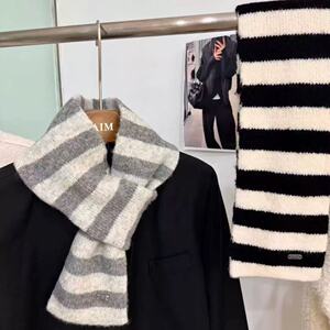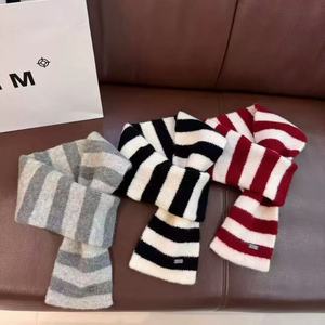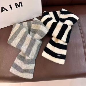 韩系显白撞色条纹穿叉小围脖装饰2025秋冬季学生保暖毛线小围巾女