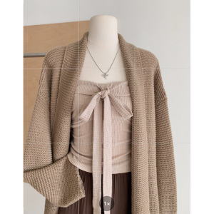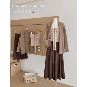 塞纳慵懒风软糯针织毛衣开衫外套+抹胸背心+半身裙氛围感三件套