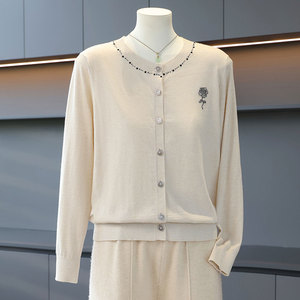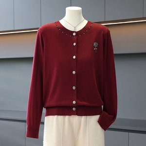 【厂家直供】圆领烫钻针织开衫外套女士毛衣春秋新款纯色百搭上衣