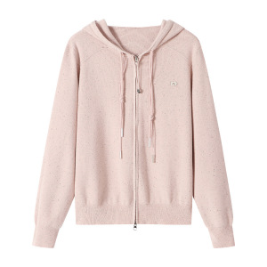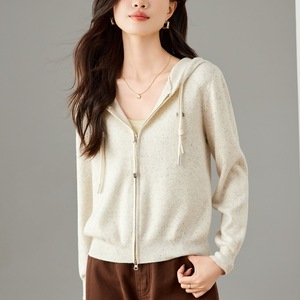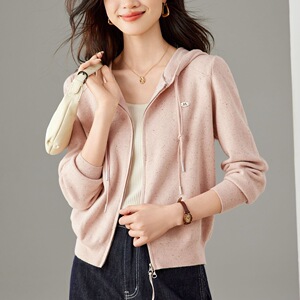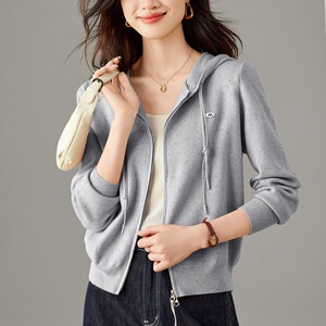 2025年新款纯色长袖百搭减龄连帽双头拉链针织开衫女短款气质上衣