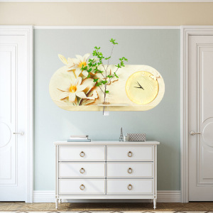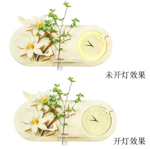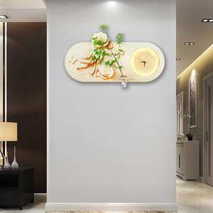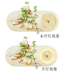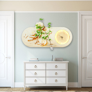 餐厅装饰画高级感带钟表水培绿植挂钟客厅餐桌背景墙钟表砂岩挂画