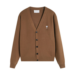 ami针织开衫25年秋冬新款白色小爱心刺绣跨境男女情侣羊毛衣外套