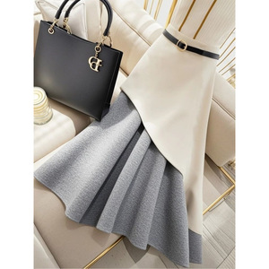 流行灰色撞色半身裙气质高腰显瘦a字长裙2024冬季