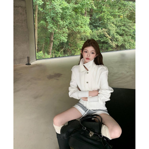 2025秋季爆款独特宽肩立领螺纹收腰下摆复古宽松显瘦休闲外套上衣