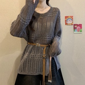 灰色针织衫加腰带(今年流行的漂亮/欧货爆款/超好看独特漂亮/内搭可外穿打底衫)