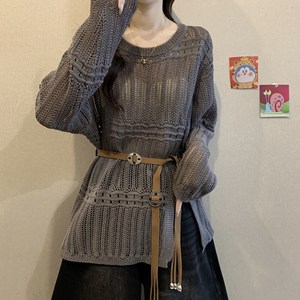 灰色针织衫加腰带(优质版)(高端欧货洋气/宽松休闲气质/时尚洋气时髦轻奢/甜美/温柔风韩系)