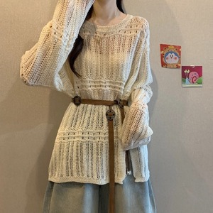 设计感钩花镂空针织衫女早秋新款大码胖mm收腰显瘦中长款罩衫上衣