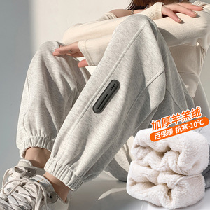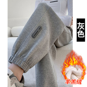 羊羔绒加绒加厚孕妇裤子春秋季外穿休闲直筒束脚打底运动卫裤灰色