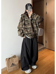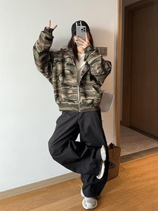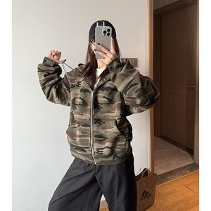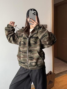 美式复古特种兵迷彩街头连帽卫衣拉链开衫外套男女春款宽松百搭外