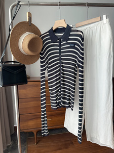 糕端!自留!!气质时尚POLO领条纹修身长袖针织衫女