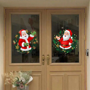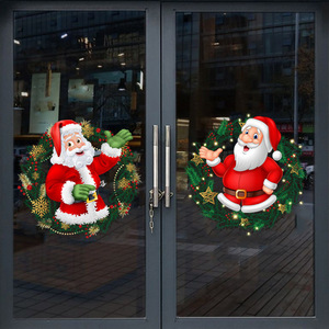 欧美跨境热卖卡通圣诞老人贴纸 客厅大门自粘圣诞墙贴批发自粘批