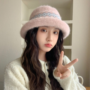 韩版秋冬帽子女款高级感水桶帽甜美百搭针织帽加绒保暖大头围盆帽