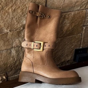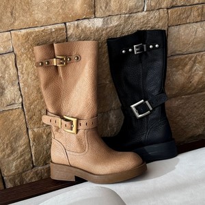 2025新款秋冬季经典高奢搭扣中筒靴小个子复古风厚底时装靴骑士靴