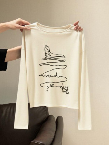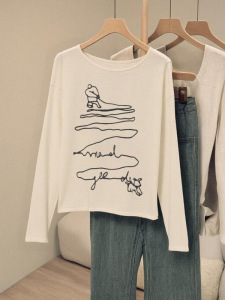 美式正肩长袖t恤防晒罩衫女秋季2025新款宽松慵懒薄款空调衫上衣