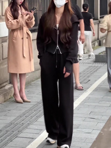 休闲风运动套装女春秋新款时尚连帽卫衣外套高腰抽绳阔腿裤两件套