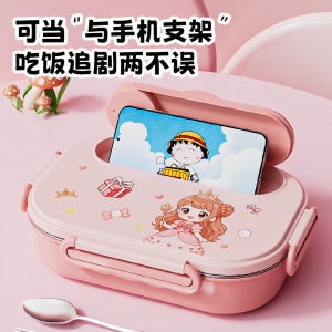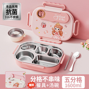 萌趣卡通儿童不锈钢分格饭盒便携午餐饭盒学生便当盒带保温袋餐具
