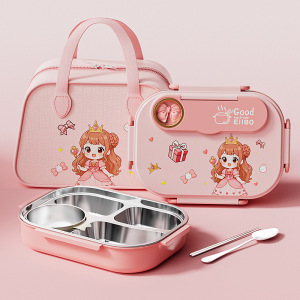 粉色小公主【四格+餐具+汤碗+大保温袋】
