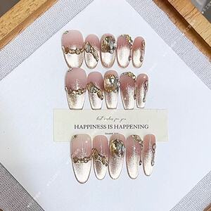 黛月达 纯手工穿戴甲秋冬新款半眠日记 香槟钻气质猫眼款美甲贴片