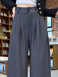 灰色西装裤女2025新款高级感垂感小个子直筒窄版秋季休闲阔腿西裤