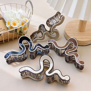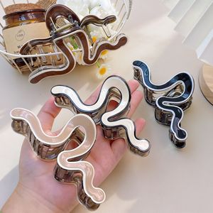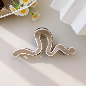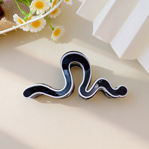 夏微宜黑白线条抓夹不规则波浪鲨鱼夹百搭小众高级感后脑勺盘发夹