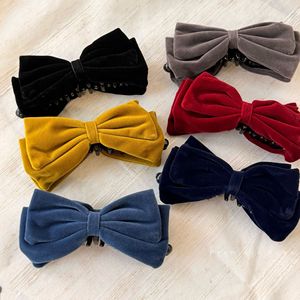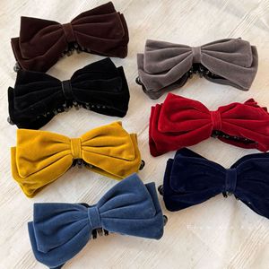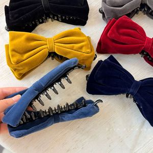 早秋丝绒蝴蝶结发夹大号香蕉夹女气质慵懒风马尾盘发竖夹发卡新款
