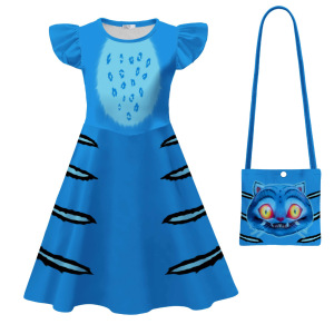 跨境 K-POP:猎魔女团信使猫印花 中大女童飞飞袖公主裙26230