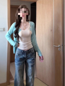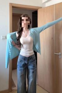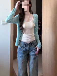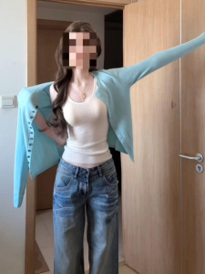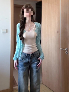 韩系早秋季穿搭蓝色针织衫上衣2025新款修身休闲外搭毛衣开衫外套