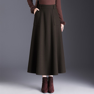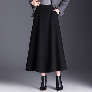 2025秋冬季口袋半身裙色高腰妈妈气质小个子中长款裙子垂感A字裙