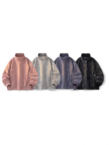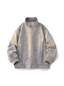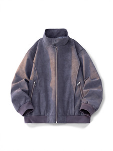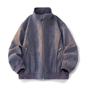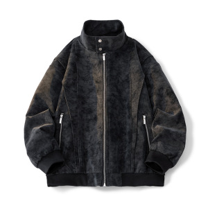 春秋新款美式高街工装夹克皮衣男复古痞帅松弛立领时尚百搭上衣男