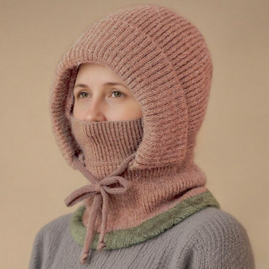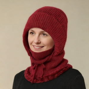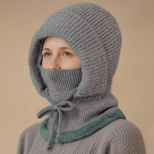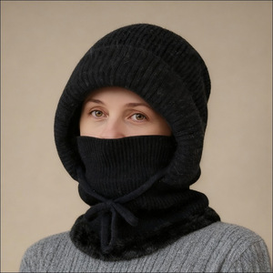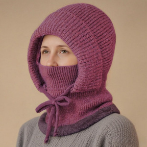 跨境欧美围脖面罩连体帽冬天加厚防寒骑车户外妈妈套头保暖针织帽