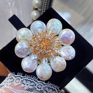 诸暨源头天然淡水炫彩花瓣巴洛克珍珠花朵胸针轻奢大气胸花配饰