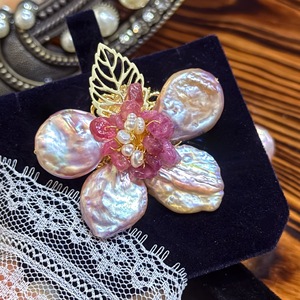 绯梦花韵*碧玺天然淡水紫粉色巴洛克珍珠胸针